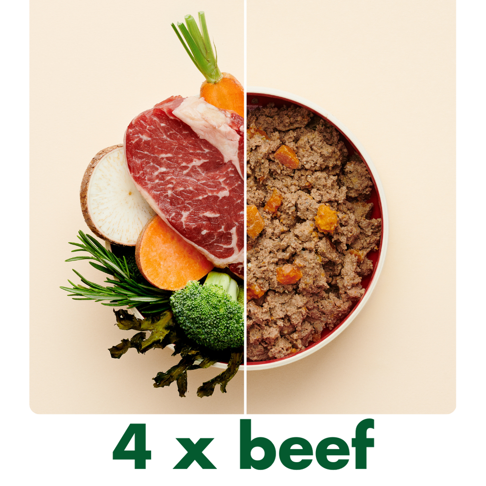 Four freshly prepared meals + optional treats and supplements - delivered to your door.