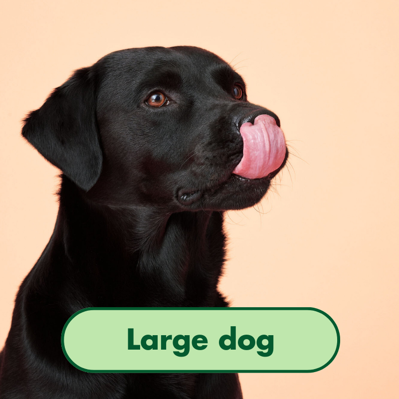 Milo, an 11 year old, 30kg Labrador, not neutered, dislikes salmon, not very active, and has joint issues. Loves chicken treats. He’s got a tailored plan to suit his needs.